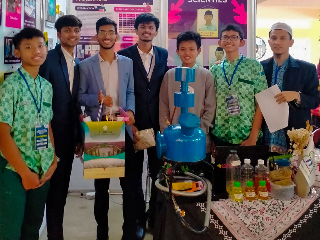Tim peneliti SMP IT AL BINAA ini menghadirkan penelitian tentang salah satu teknologi untuk mengubah Biomassa menjadi gas sintesis dan biochar, untuk mengubah limbah plastik kembali menjadi minyak yang dapat digunakan, serta menjadi produk cair antara yang dapat dimurnikan menjadi biofuel hidrokarbon drop-in, aditif bahan bakar beroksigen, dan pengganti petrokimia.